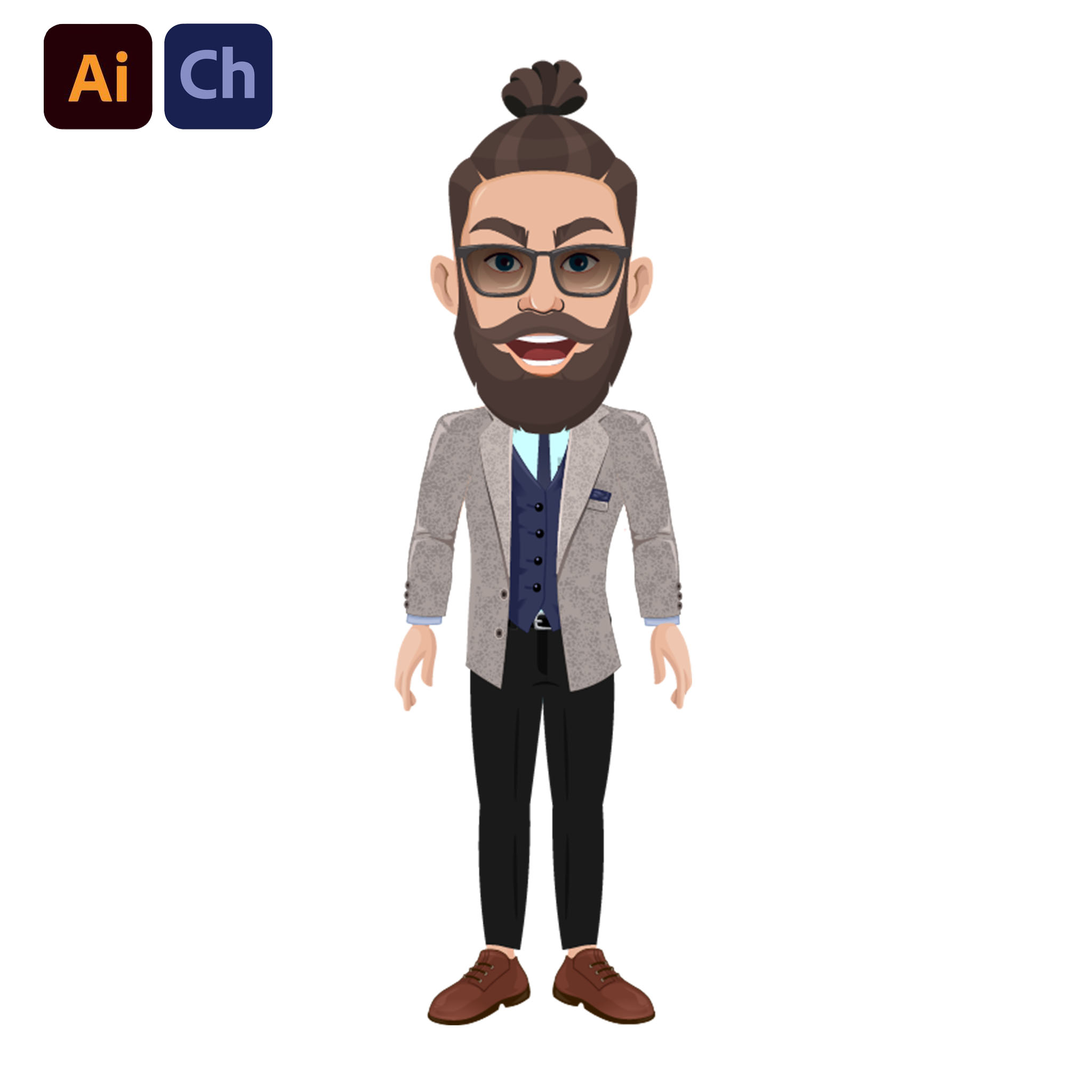 Lucas is a chic and professional puppet designed by Puppetlancer for Adobe Character Animator, perfect for creating animations that require a fashionable yet authoritative character. Lucas features a brown hair bun, beard, glasses, and a well-coordinated outfit consisting of a coat, base coat, and tie. He is ideal for content related to business, fashion, or any theme that benefits from a modern and stylish professional presence.